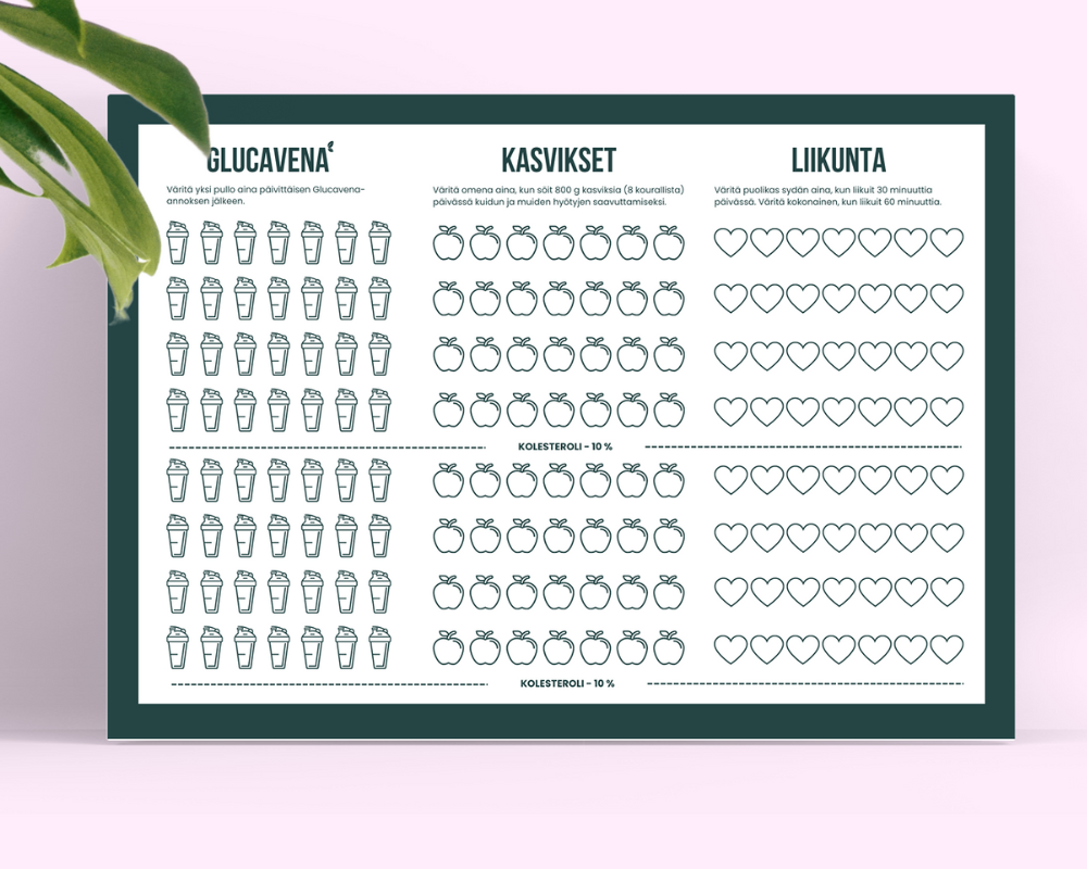 Nauti Glucavenaa 1 annos päivässä säännöllisesti vähintään kolmen kuukauden ajan, niin huomaat sen vaikutuksen kolesteroliarvoihisi. Yhdistä Glucavena muihin elintapamuutoksiin, kuten liikunnan lisäämiseen, niin saat parhaat mahdolliset hyödyt.